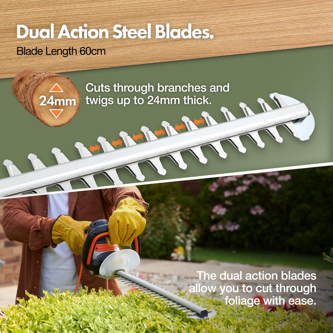 VonHaus Hedge Trimmer 710W – Electric Lightweight Cutter for Hedges, Branches, Shrubs, Twigs – Comes with Blade Cover, 10m Cable, 61cm Blade, Rotating Handle, 2 Stage Safety Trigger