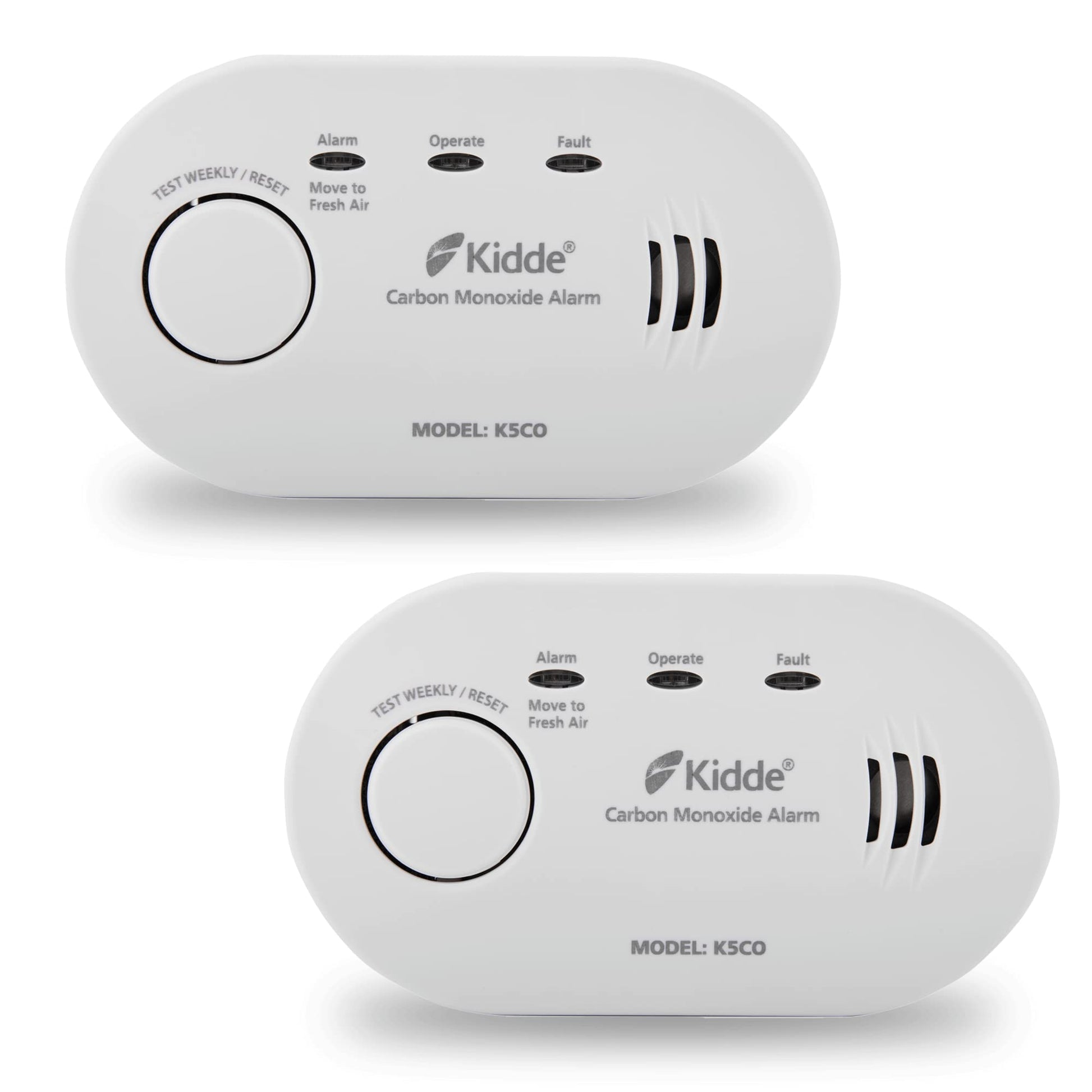 Twin Pack Kidde 5CO Battery Powered Carbon Monoxide Alarm and Detector - 10 Year Sensor Life with AA Batteries